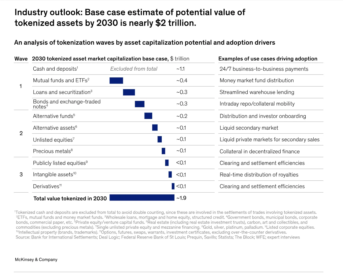 - Tokenization of Real-World Assets — BlackRock's BUIDL fund and others tokenizing $trillions; McKinsey projects $16T by 2030