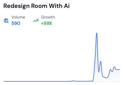 Searches for " redesign room with AI " and " remodel AI app " are trending, showing people's appetite to experiment with décor digitally. To track these emerging trends effectively, explore our guide on Google Trends alternatives for comprehensive market research.