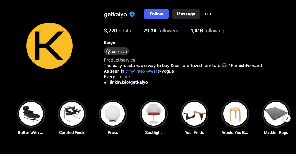 Notably, these platforms add trust signals : Chairish, for example, often has professional curation and approval for listings; Kaiyo and AptDeco handle logistics and quality checks for used furniture, making buyers more comfortable.