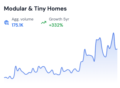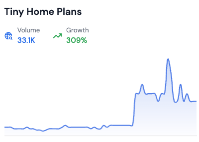 Tiny home living solutions are popular too, as seen in searches for “tiny home plans” as demonstrated by chart below from Rising Trends.